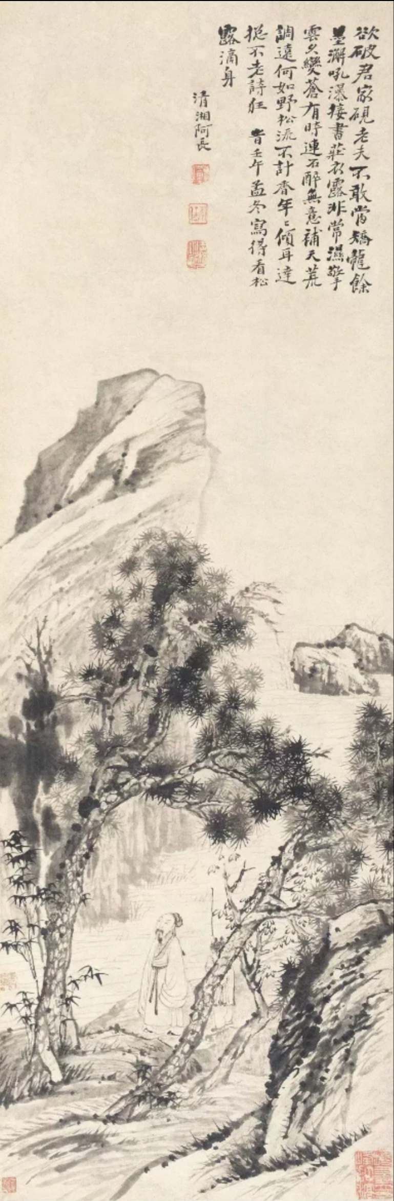 石涛(1642年-1708年),清初画家,原姓朱,名若极,广西桂林人,祖籍安徽凤阳,小字阿长,别号很多,如大涤子、清湘老人、苦瓜和尚、瞎尊者,法号有元济、原济等。南明元宗朱亨嘉之子,与弘仁、髡残、朱耷合称“清初四僧”。石涛是中国绘画史上一位十分重要的人物,他既是绘画实践的探索者、革新者,又是艺术理论家。