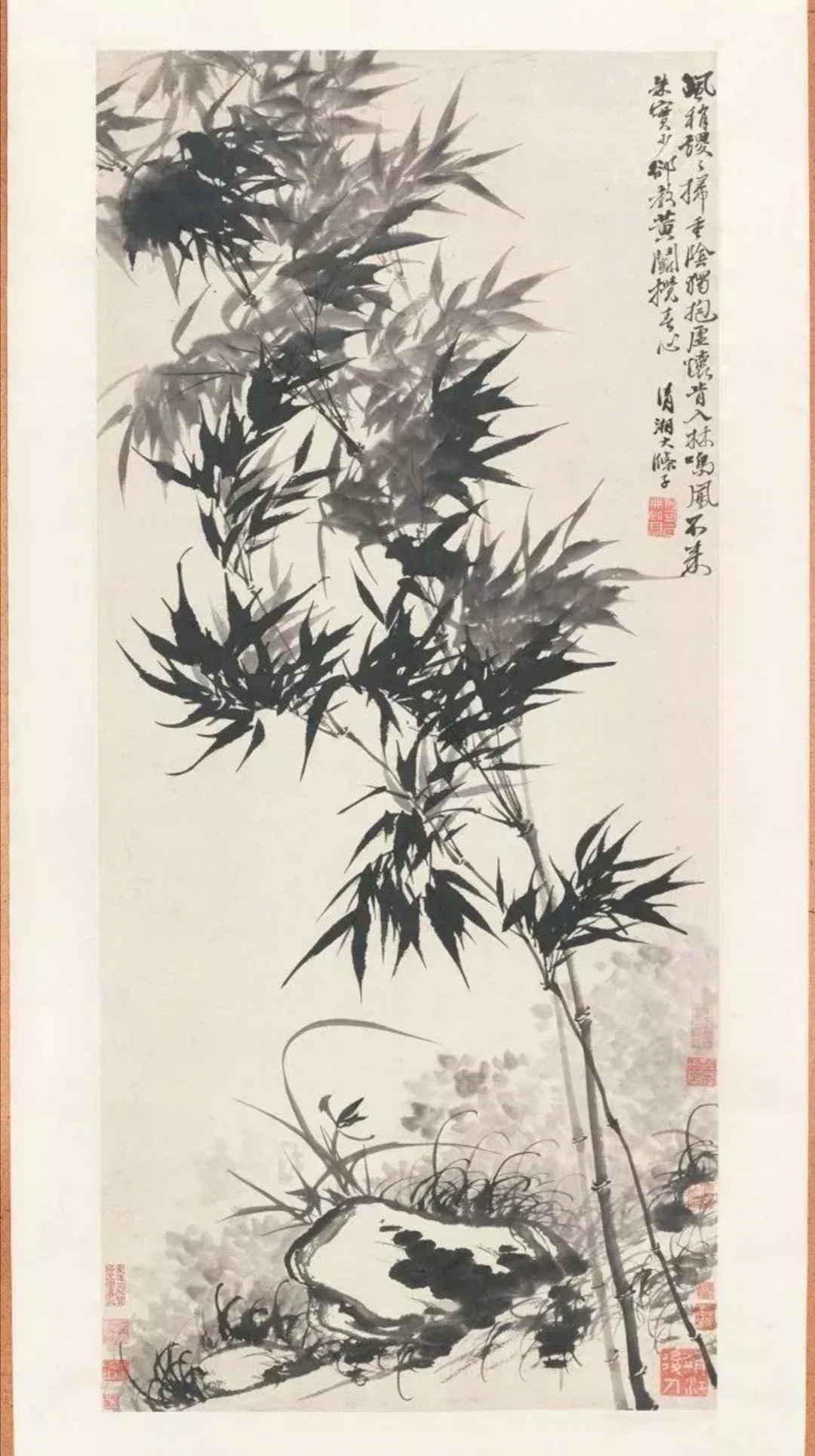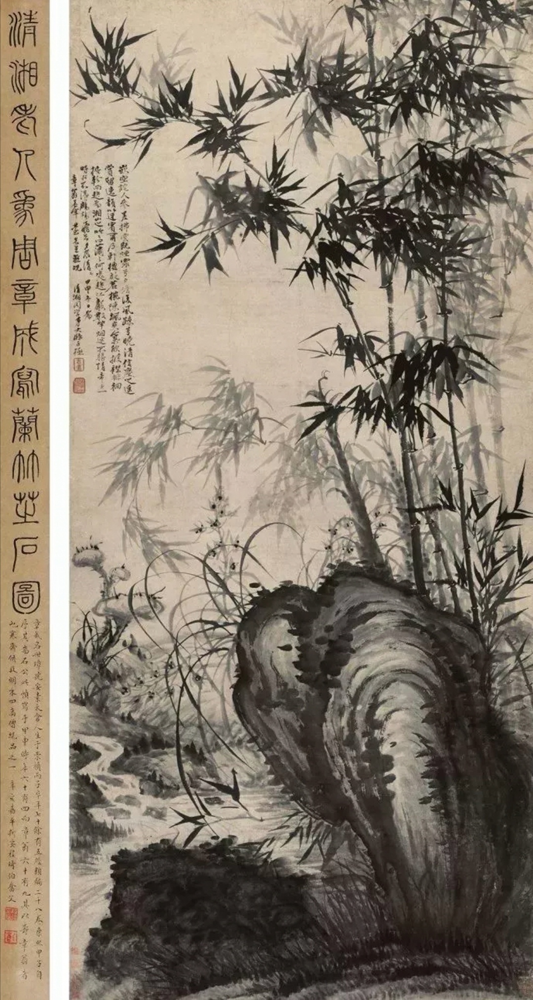 清 石涛 兰竹芝石图 立轴 水墨纸本